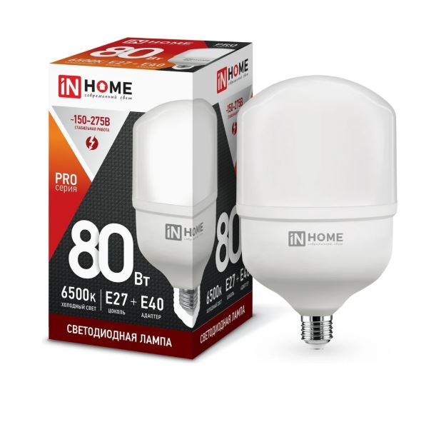 Светодиодная лампа IN HOME LED-HP-PRO 80Вт 230В E27 с адаптером Е40